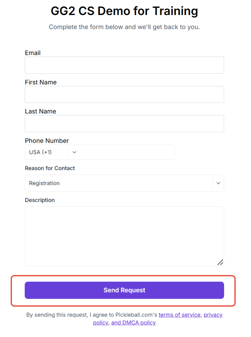 By clicking on this Contact League tab, it will prompt you to send an email. Please fill out all information and then select Send Request.