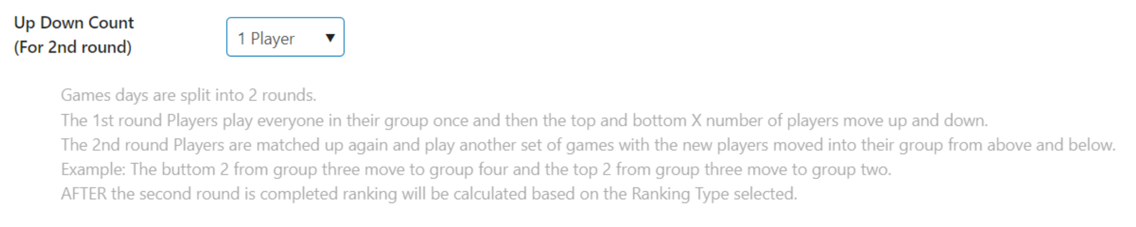 If there are two rounds of play, the first round can be treated as an Up Down round where the League Director specifies the number of players in each group to move up or down. Points are awarded for the second round.