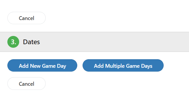 Once the session is configured, you can add your game days. Initially, most leagues will add multiple game days that will span the entire session. There is also an option to add individual game days.