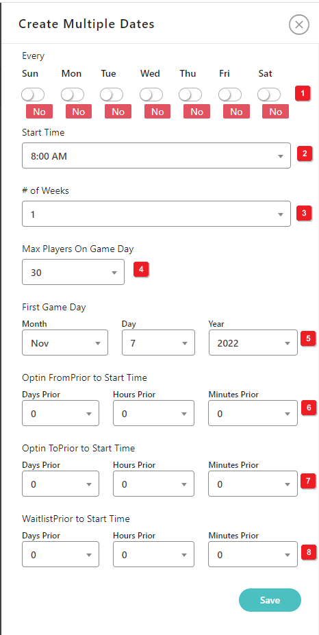 - Select the amount of time prior to each game day that players can begin to opt in. Players must opt themselves in if they want to play on any game day.